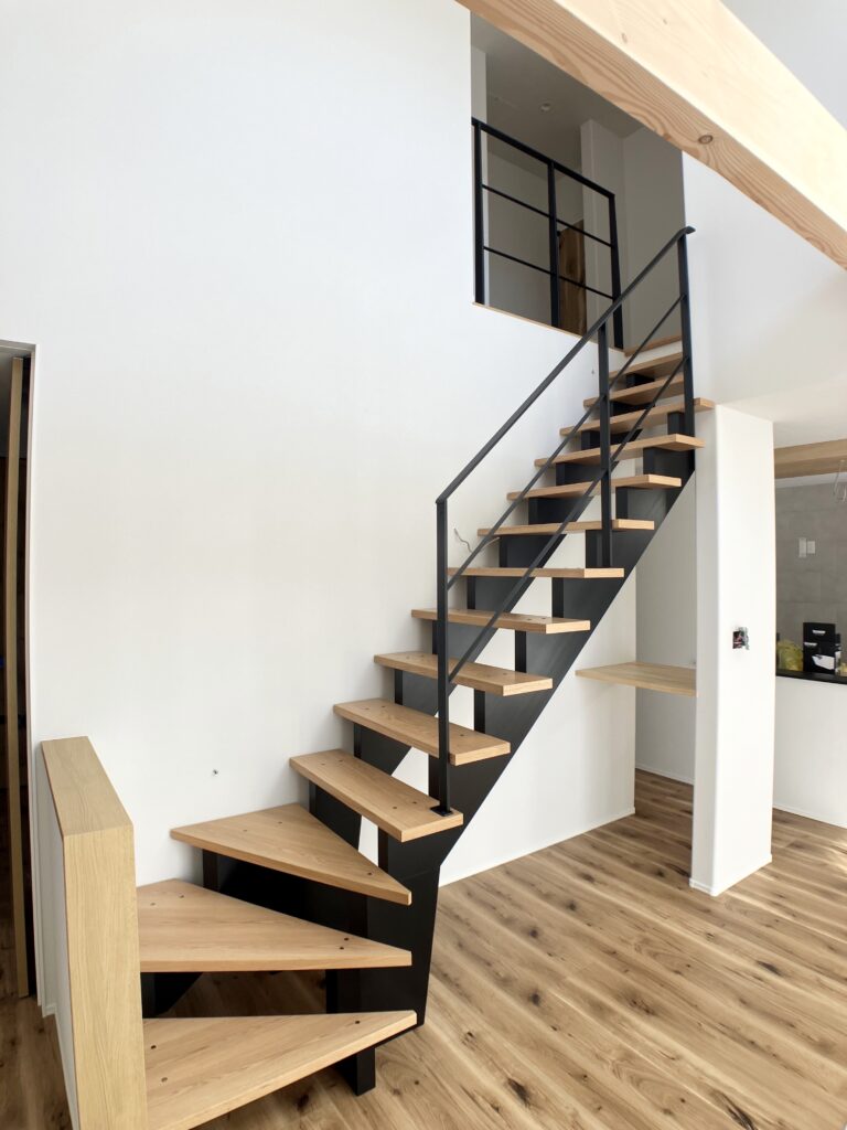 リビング階段はストリップ階段を採用。