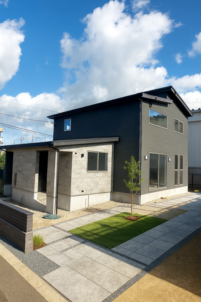 外壁には重厚感のあるお洒落なタイルを施しよりスタイリッシュな外観に。
